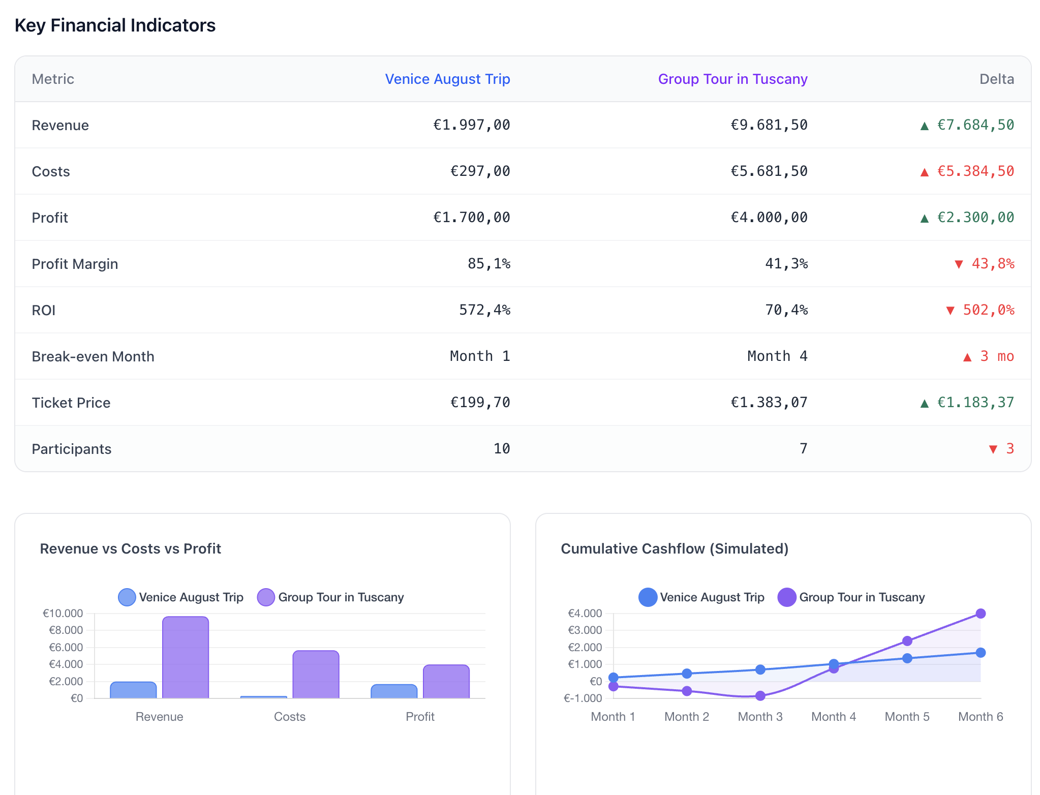 Run multiple scenarios side by side. See how different assumptions change your bottom line.