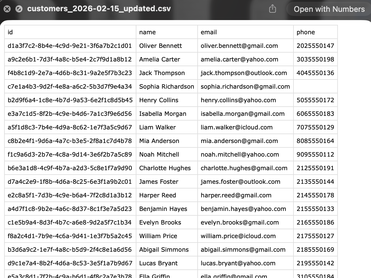 Download scenario summaries, comparison reports, and customer data as structured files. Perfect for sharing with partners or stakeholders.
